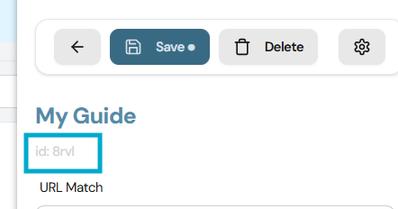 Save the guide. Note the Guide ID. You can find the Guide ID in the guide settings panel or in the URL when the guide is open in the Builder.
